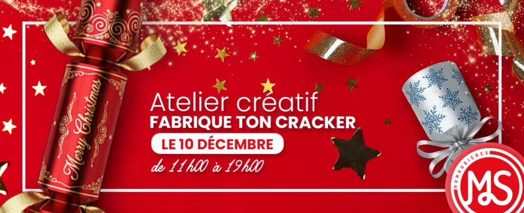 La magie de Noël s’installe à Maine Street et vous donne rendez-vous le 10 décembre pour un atelier créatif plein de féerie ! Petits et grands pourront fabriquer leur propre cracker de Noël, un incontournable des fêtes à glisser sous le sapin ou à offrir à un proche. 🎅
