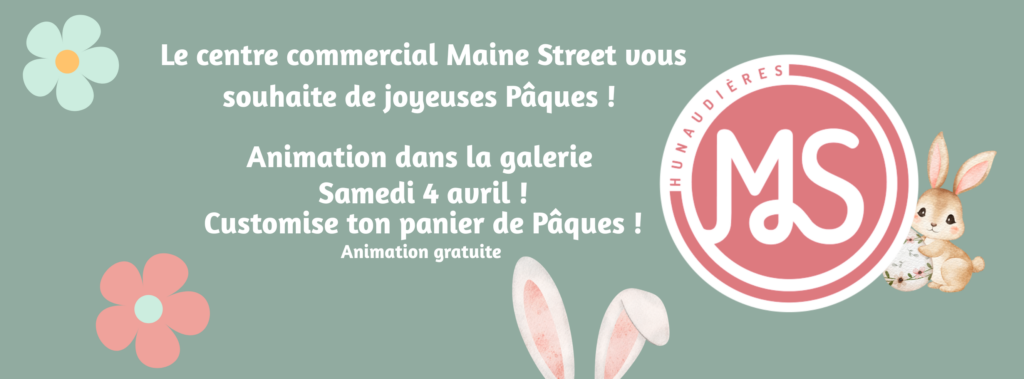 Toute l’équipe du centre commercial Maine Street vous souhaite de très joyeuses Pâques et vous attend nombreux le samedi 4 avril pour participer à cet atelier festif. 🐣🌸