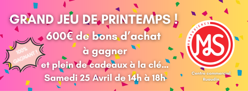 À l’occasion de ce grand jeu de printemps, ce sont 600€ de bons d’achat qui sont mis en jeu, accompagnés de nombreux cadeaux à gagner immédiatement.