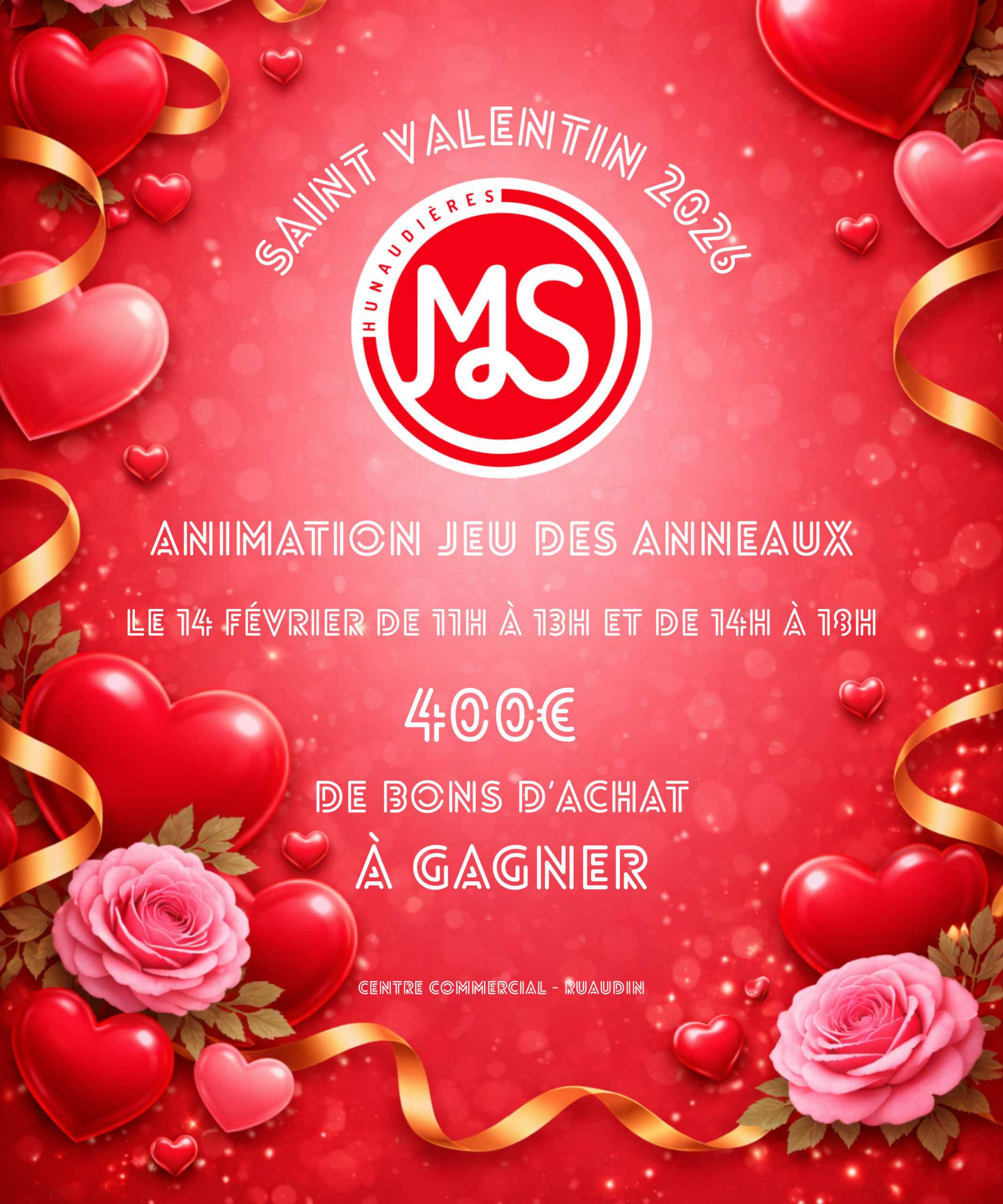 Et en avant les 400 € de bons d’achat à gagner ! Le 14 février, Maine Street, votre centre commercial au Mans, vous invite à tenter votre chance lors d’une animation spéciale Saint-Valentin, directement en galerie.
